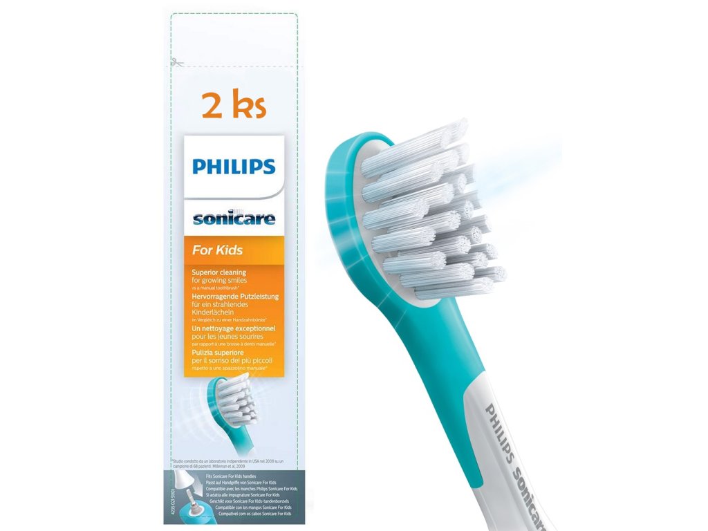 Hlava zubního kartáčku Sonicare For Kids je ideální pro malá ústa s rostoucími zuby. Lze použít výhradně s elektrickými zubními kartáčky For Kids. Společně dětem nabízí bezpečný a příjemný způsob čištění zubů, při kterém se děti zabaví a snadno si na něj zvyknou.